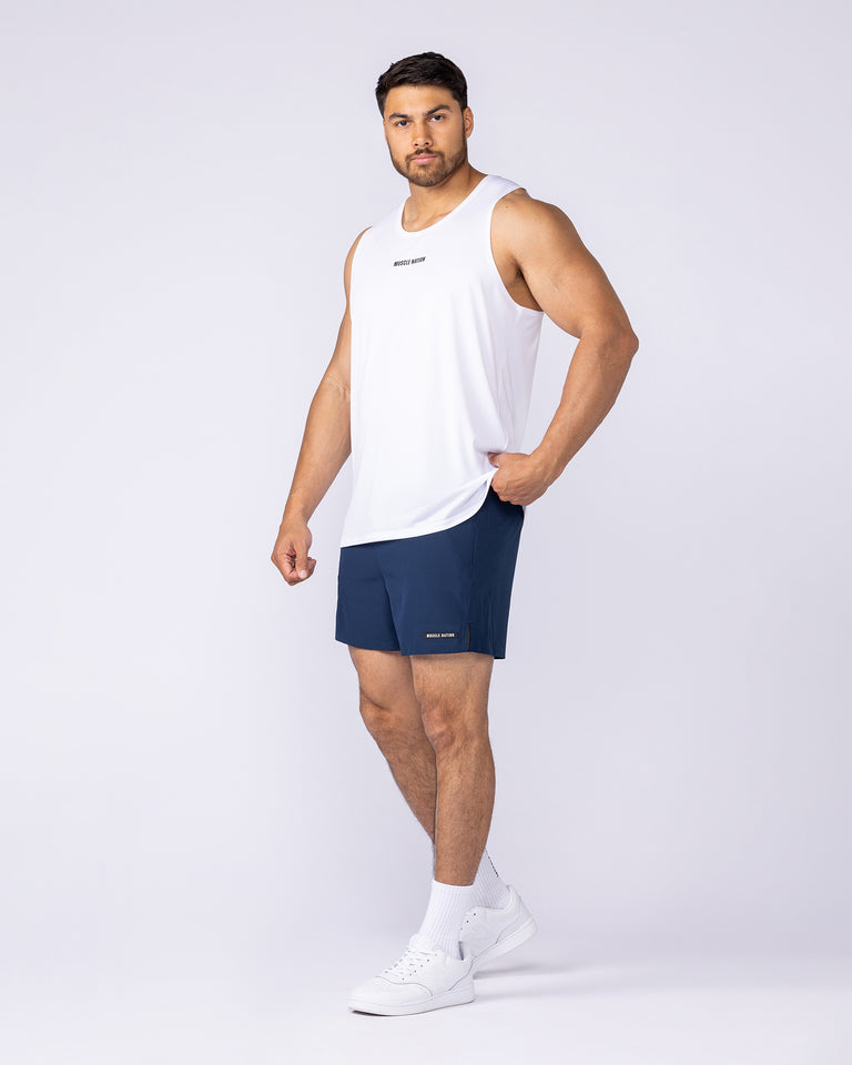 The Level Up Training 4" Shorts are made to move. With a four-inch inseam, side splits and ultra-light running poly fabric, these shorts are built to keep you fast, cool and focused. The true to size fit offers a streamlined feel without restriction, while the branded elastic waistband keeps everything in place through high-intensity movement. Side zip pockets give you secure storage without adding bulk. Made with multi-directional stretch fabric that flexes with you during every lift, sprint and rep.