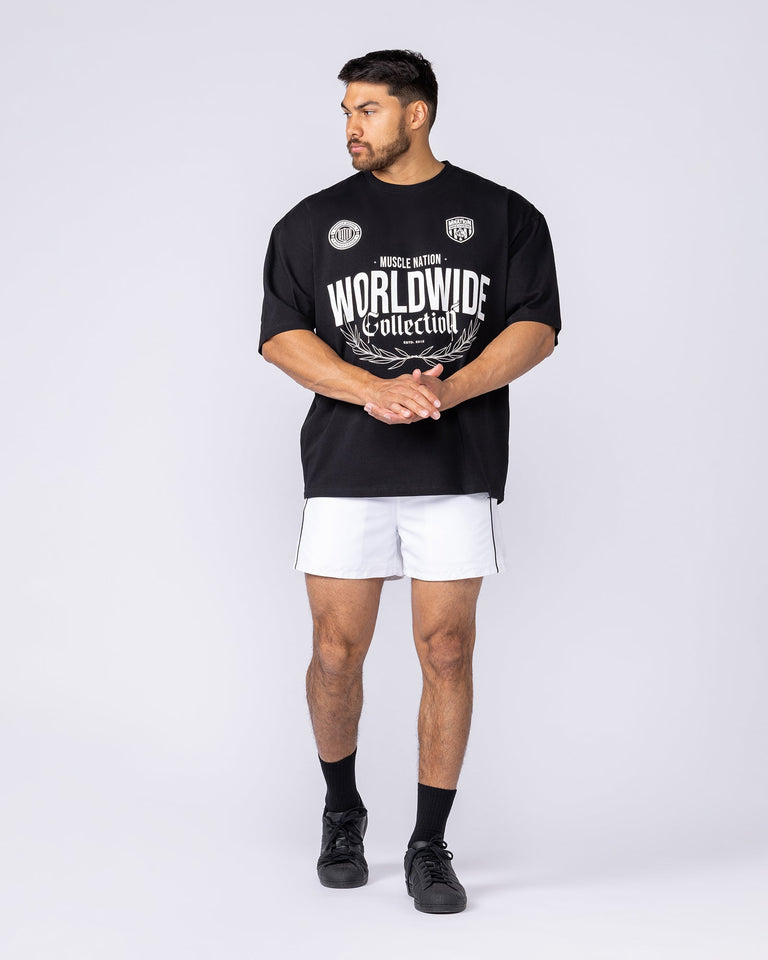 The Worldwide Collection Oversized Tee brings a bold streetwear aesthetic with a relaxed oversized fit. Crafted from mid-weight cotton jersey, this tee offers breathable comfort and structure that holds its shape wear after wear. Finished with large front Muscle Nation artwork, it’s the perfect staple for casual days or gym sessions.