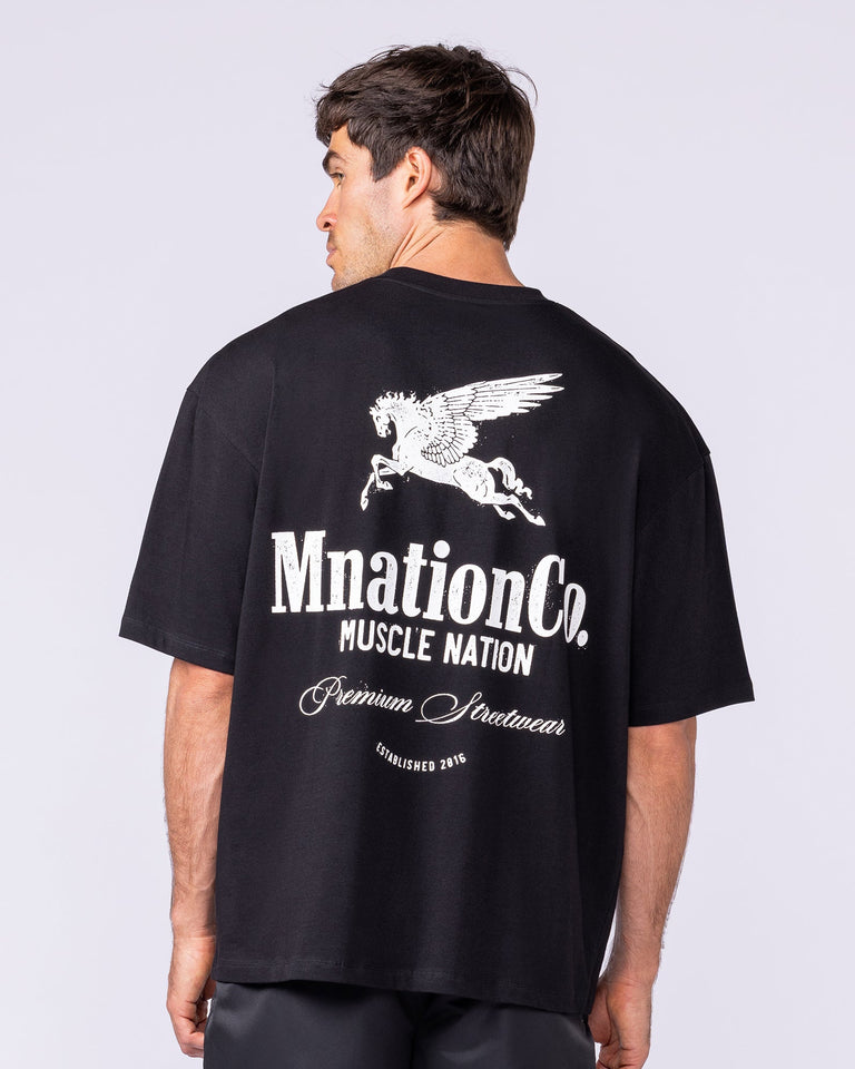 The Pegasus Oversized Tee delivers a bold yet relaxed look that’s perfect for everyday wear. Crafted from mid weight cotton jersey, this breathable tee offers the ideal blend of comfort and durability. Featuring a small MN logo on the chest and a large Pegasus inspired print on the back, it’s a standout piece for both gym sessions and casual days.