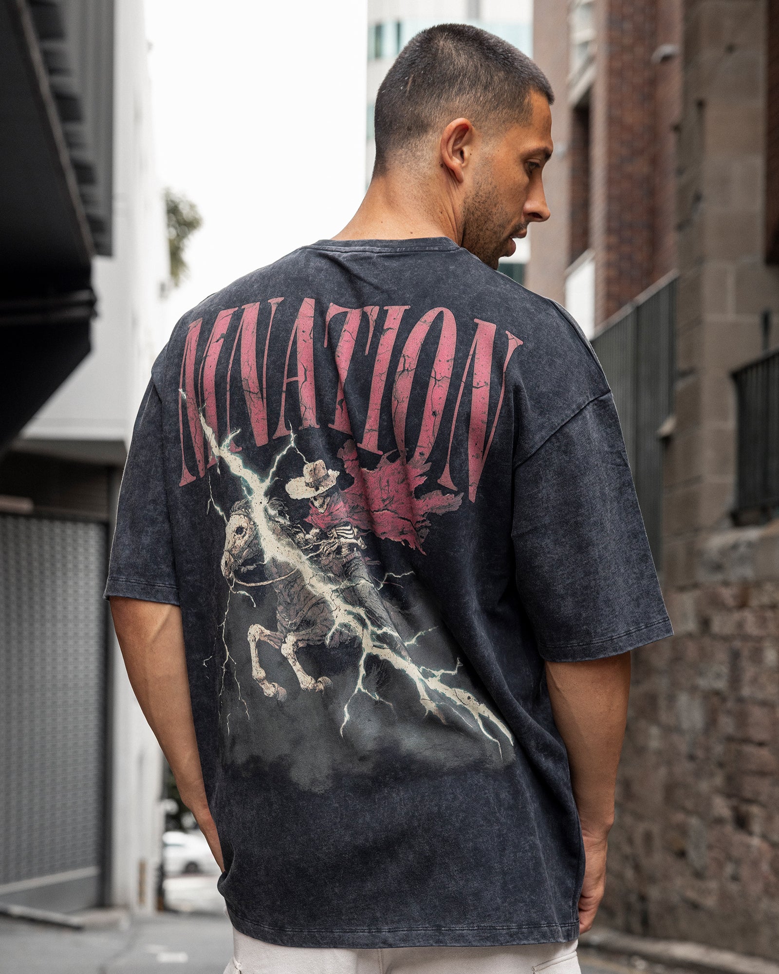 Night Rider Vintage Oversized Tee - Washed Black