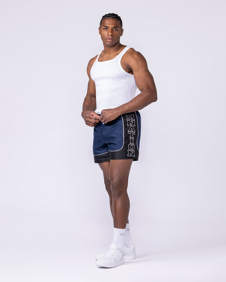 The Headliner 5" Shorts bring old school athletic energy with a modern fit and feel. Designed in a lightweight non stretch woven fabric with a breathable mesh lining, these shorts keep you cool and comfortable whether you’re in the gym or on the go. Featuring bold contrast side panels with large MNATION embroidery, they deliver that statement sports look. Finished with invisible zippered side pockets for secure storage and an adjustable drawcord waistband for a custom fit.