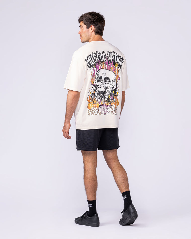 The Inferno Oversized Tee in Travertine turns up the heat with a bold graphic and relaxed fit. Made from mid weight cotton jersey, it delivers breathable comfort with a soft yet structured feel. The small MN logo on the front keeps it minimal from the front, while the large back artwork brings all the energy. Designed in a true oversized fit with a classic crew neckline, this tee is made for training, lounging or throwing on post workout with ease.