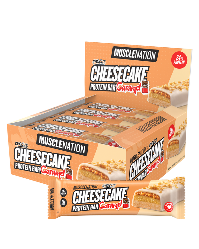 The Muscle Nation x Choclt Caramel Cheesecake Protein Bar is here, the perfect snacking choice for when you’re on the go, it's both indulgent and delightful.