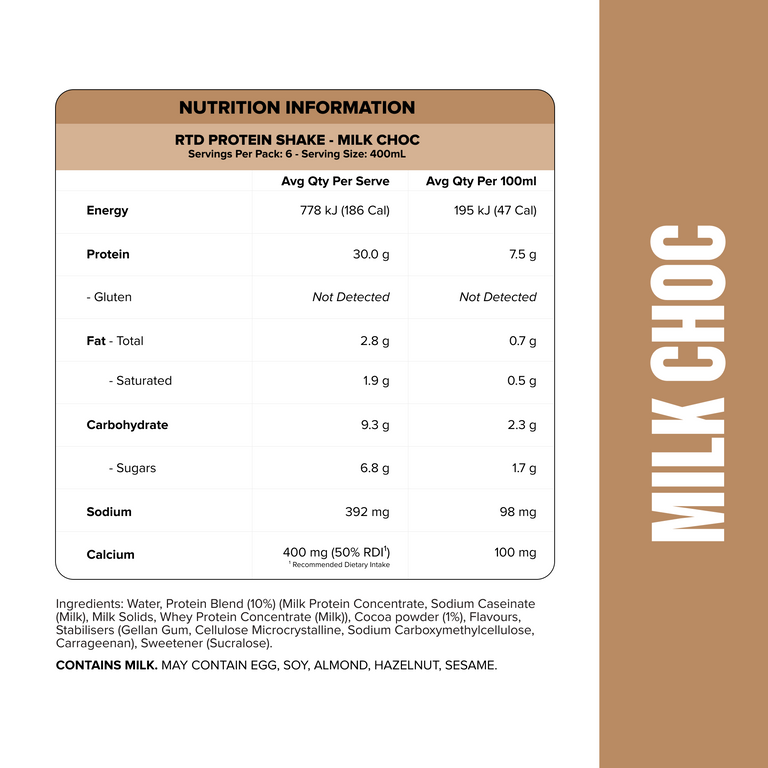 Protein Shake RTD - Milk Choc 400ml Bottle (6 Pack)