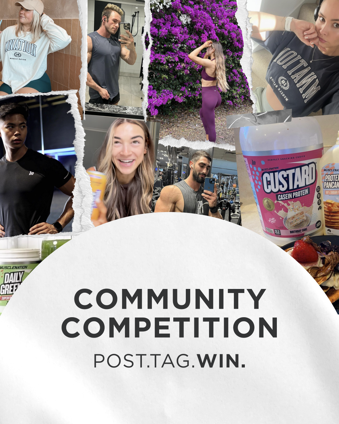 To enter, tag @musclenation or @musclenationfood on Instagram. Show off your Muscle Nation apparel and supplements.