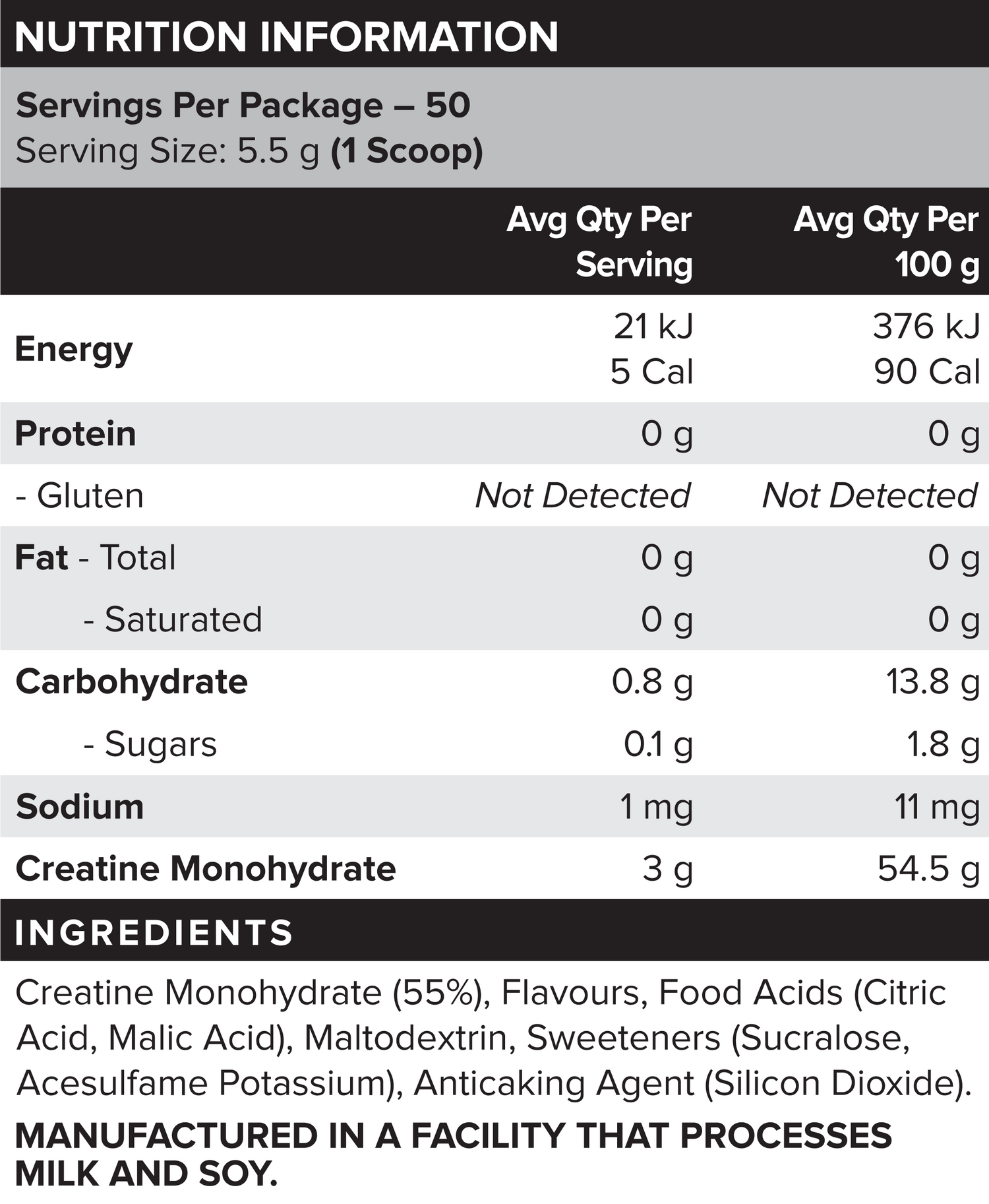 Muscle Nation Creatine is unflavoured and mixes well with our range of pre-workouts, aminos and protein powder supplements.