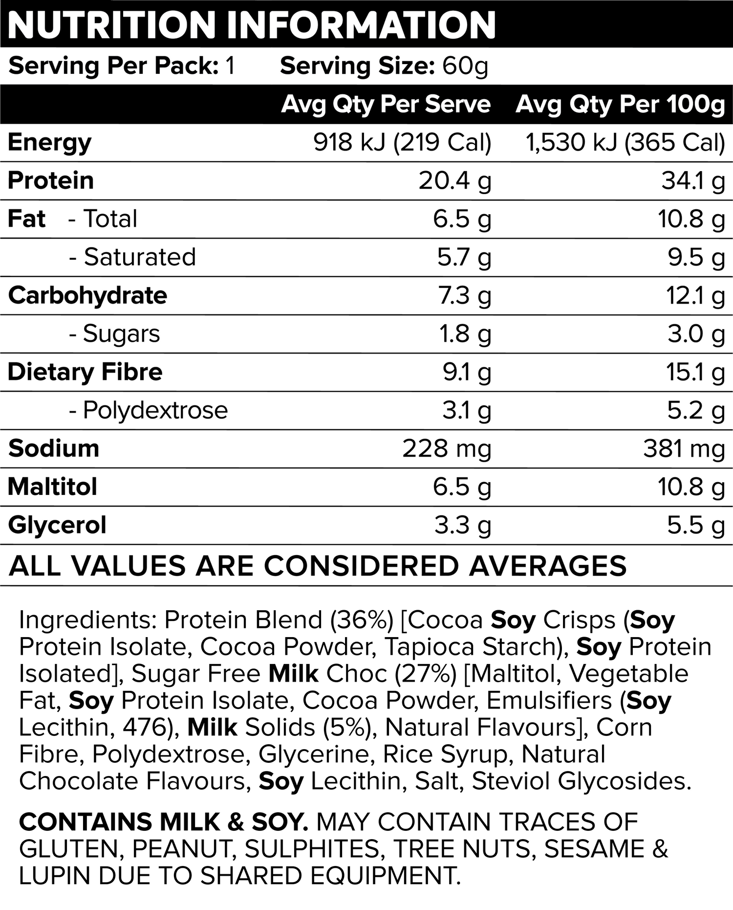 This soft-textured and flavour-filled protein bar is filled with crisps, added milk chocolate drizzle and finished in a layer of milk chocolate.