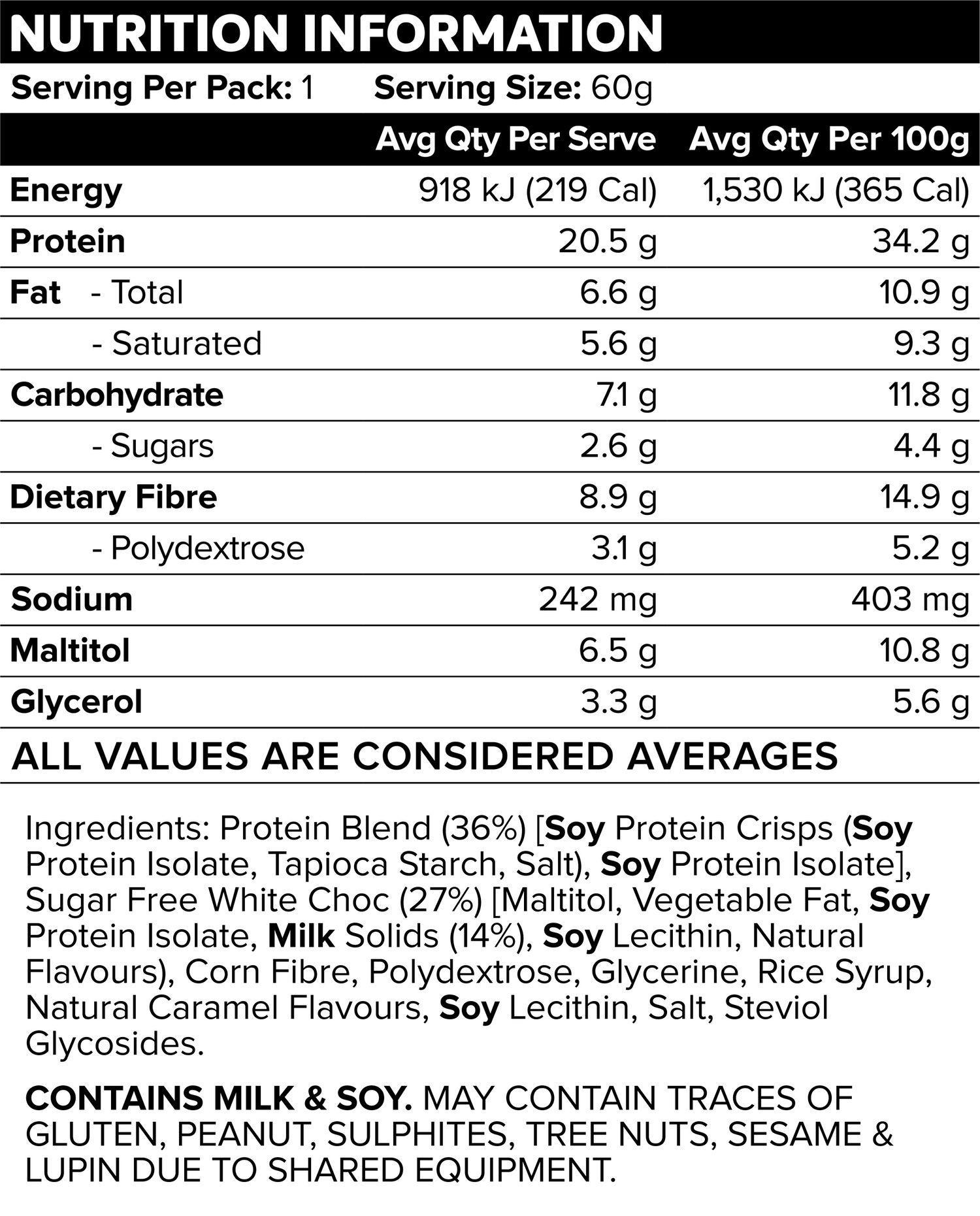 Introducing our delicious White Choc Caramel Crisp filled Protein Bar.