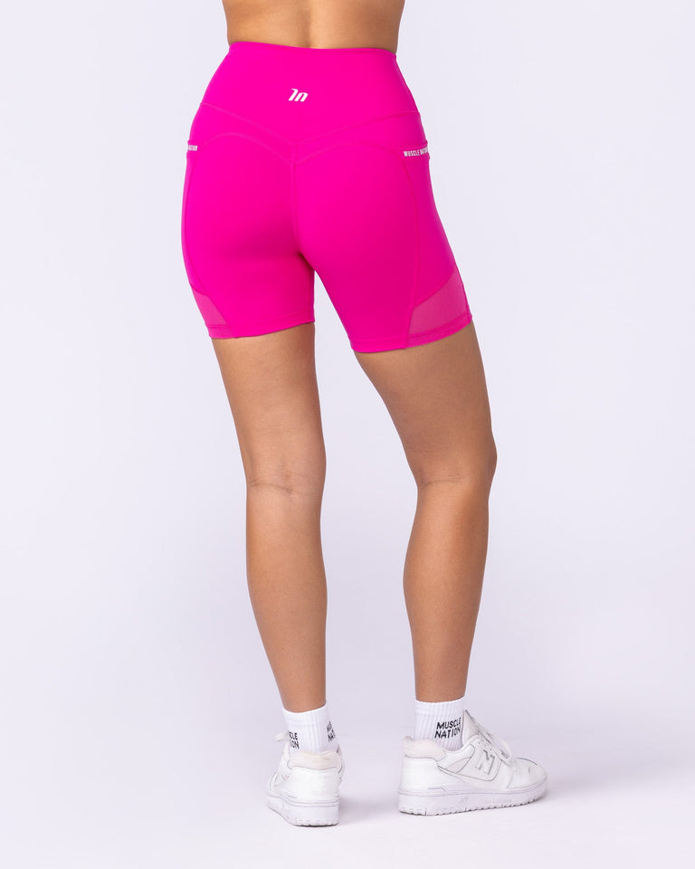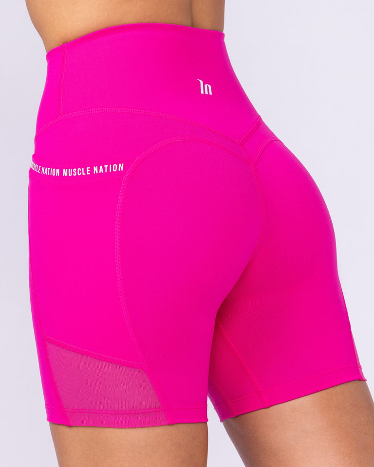 The Illusion Signature Pocket Bike Shorts are designed for performance, comfort and style. Made from our compressive Signature Fabric, these shorts sculpt and support your body through every move. Featuring contouring panel lines that define your shape, breathable mesh panels for ventilation and side phone pockets for convenience. Finished with the MN Essential lined waistband for a smooth, secure fit and no front seam for all day comfort, these shorts are made to move with you through every rep, stride and stretch.