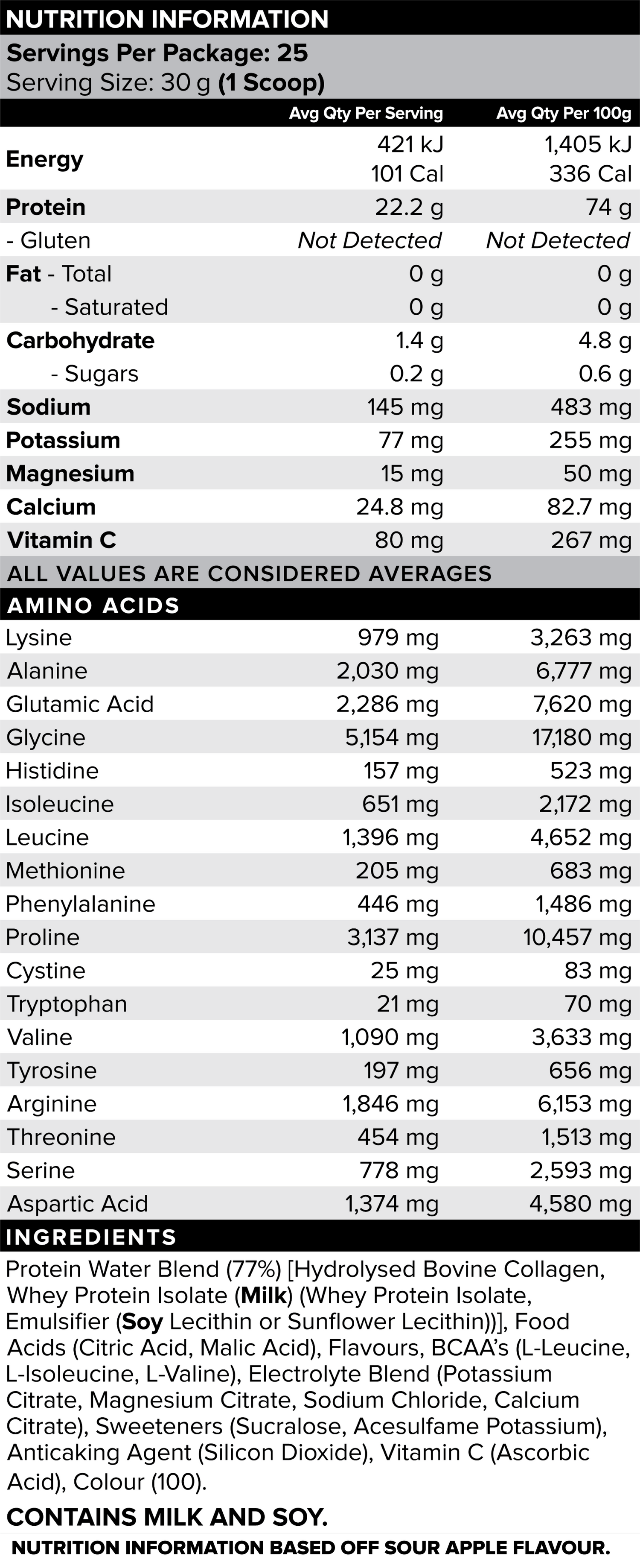 Ingredients + Nutrition Panel